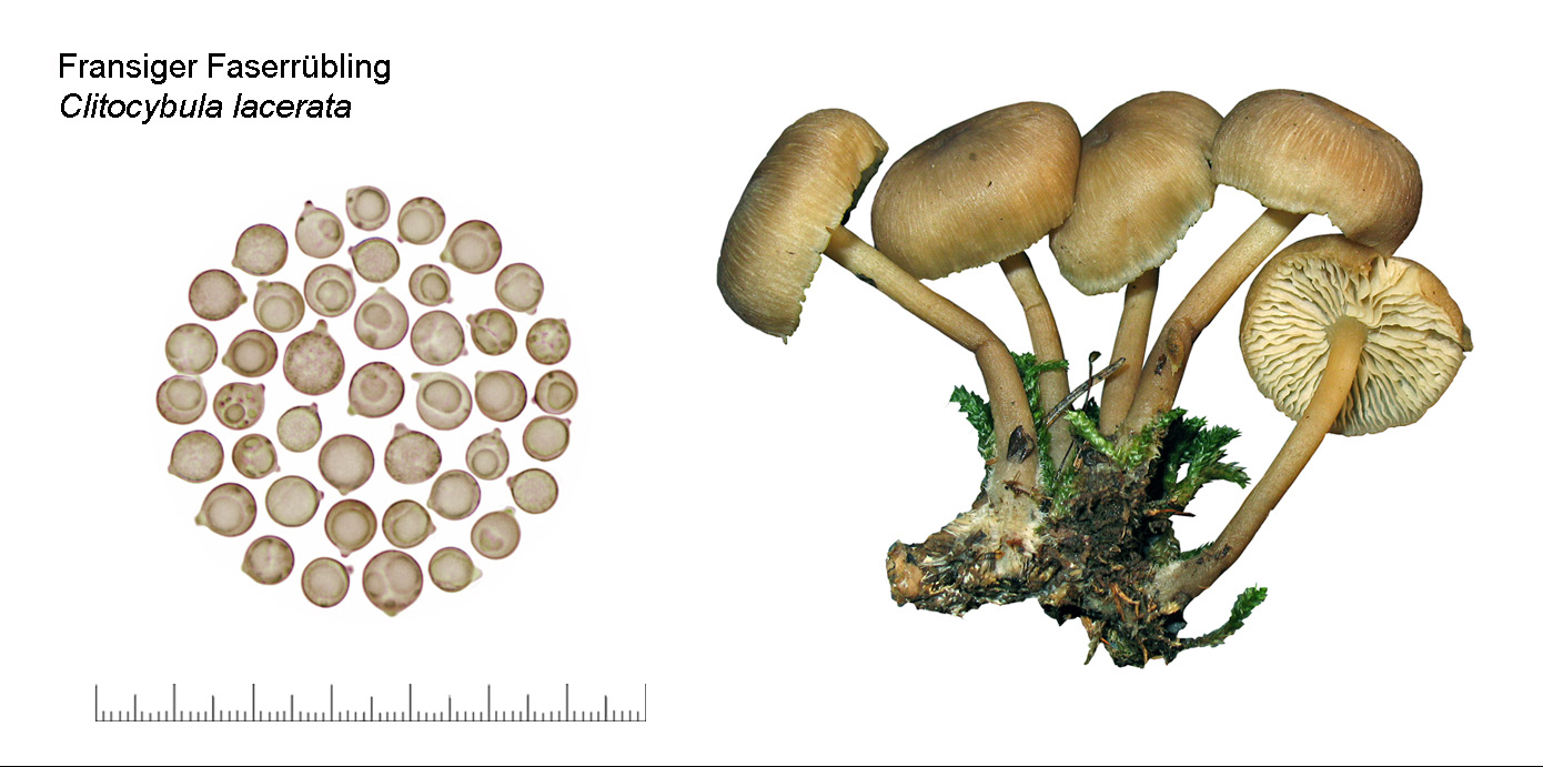Geruch leicht rettich oder kohlartig Geschmack, mild, fade Hut braun, Rand blasser, bewimpert, eingebogen Lamellen weiss, angeheftet