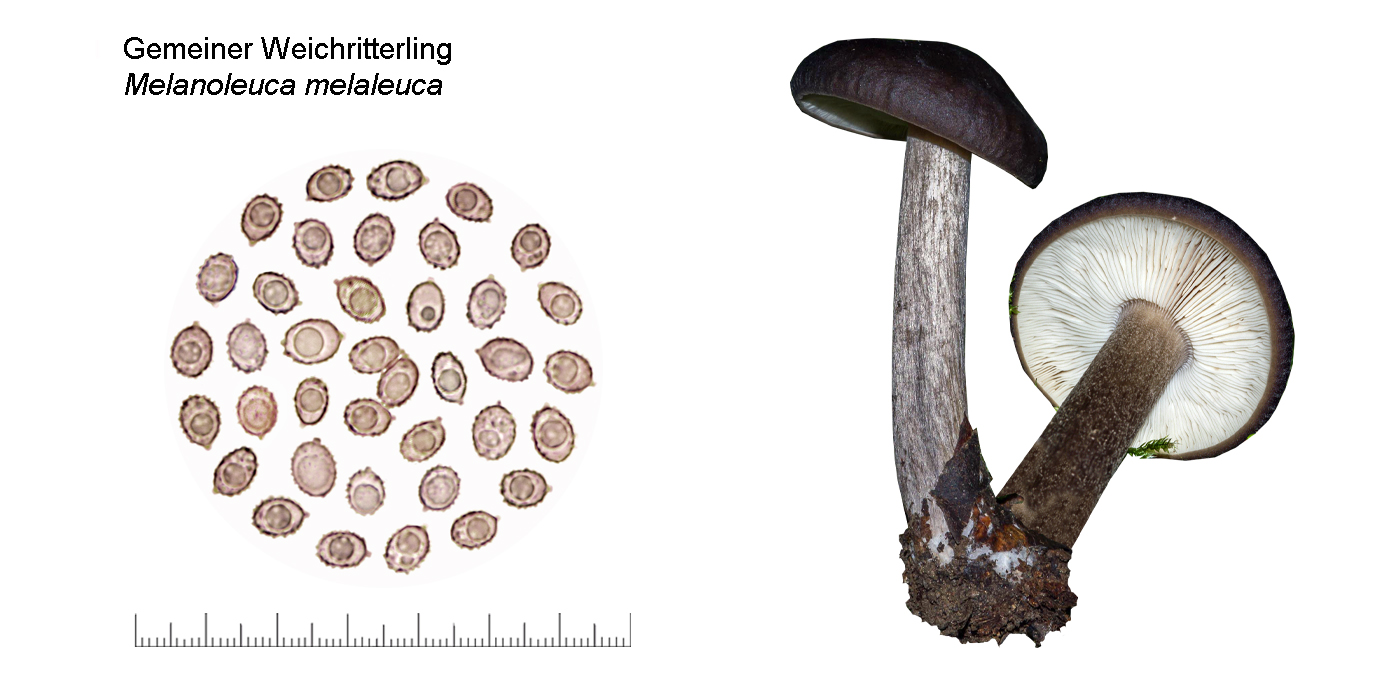 Hut graubraun, schwarzbraun, gebuckelt oder niedergedrückt, hygrophan, glänzend Fleisch weisslich bis alt cremefarben, nicht verfärbend Stiel längsfaserig, unterer Teil weiss überfasert